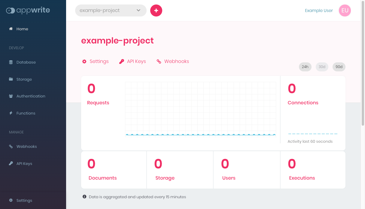 From here, you can manage all aspects of your Appwrite project. For instance, from the left-hand sidebar you can: